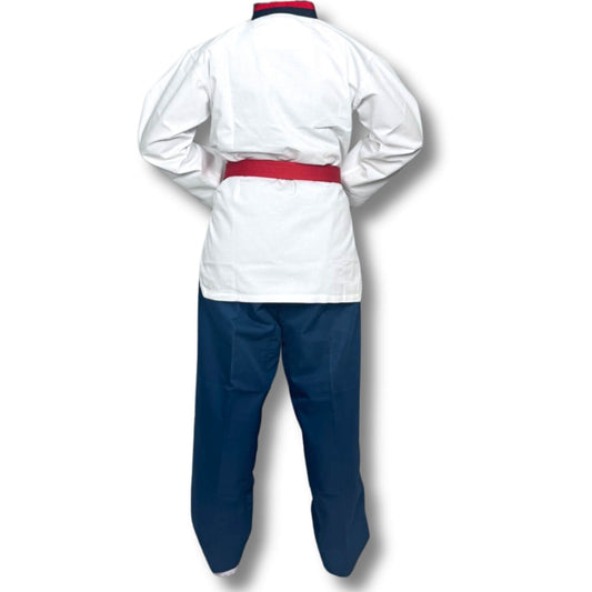 Krolin PoomStar Male Jr – Male Junior Taekwondo Poomsae Uniform (Blue Pants, WTF Approved, 65/35 Poly-Cotton)