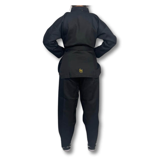 KROLIN Hybrid Pro Taekwondo Uniform – Black with Black Neck -White Belt Included.